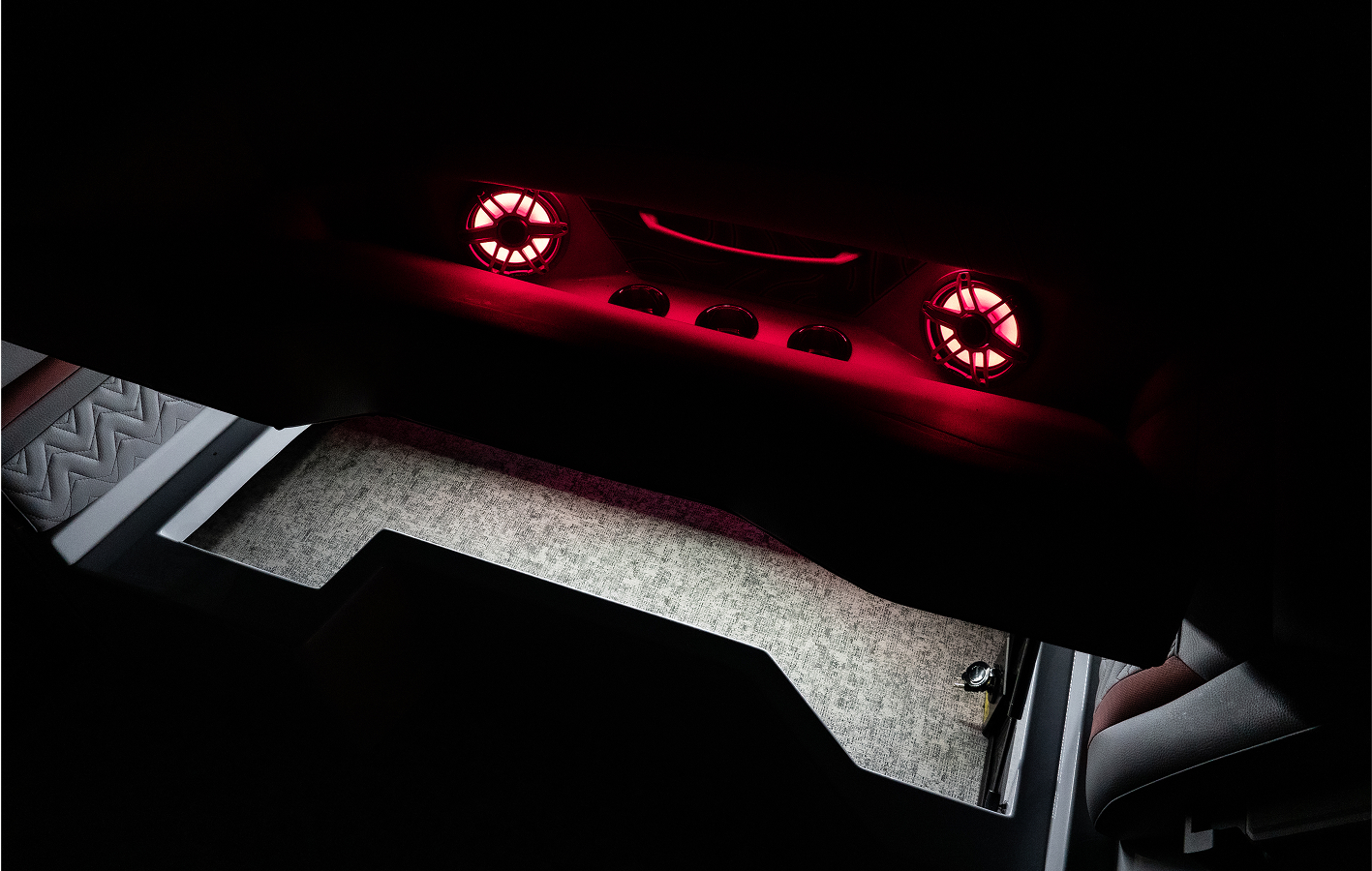 Customize your atmosphere with full-spectrum RGB lighting integrated into the cockpit, underwater, deck, and speaker zones. These vibrant exterior accents create an unforgettable visual experience, day or night.